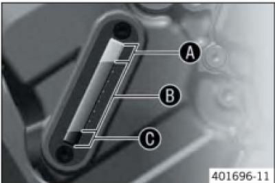 » Если уровень моторного масла – в зоне B устройства визуального контроля уровня масла: – Можно долить масло.